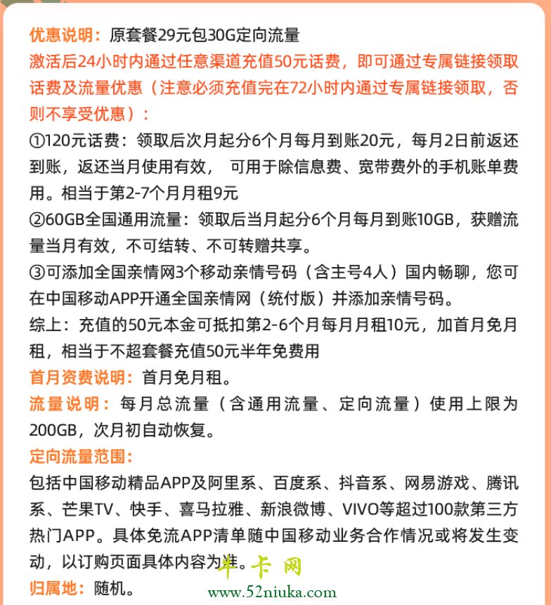 优惠说明:原套餐29元包30G定向流量